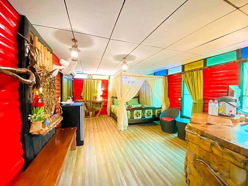 The spacious family room offers a private entrance, soundproof walls, a seating area, a dressing room and a TV with satellite channels. The unit offers 5 beds.
